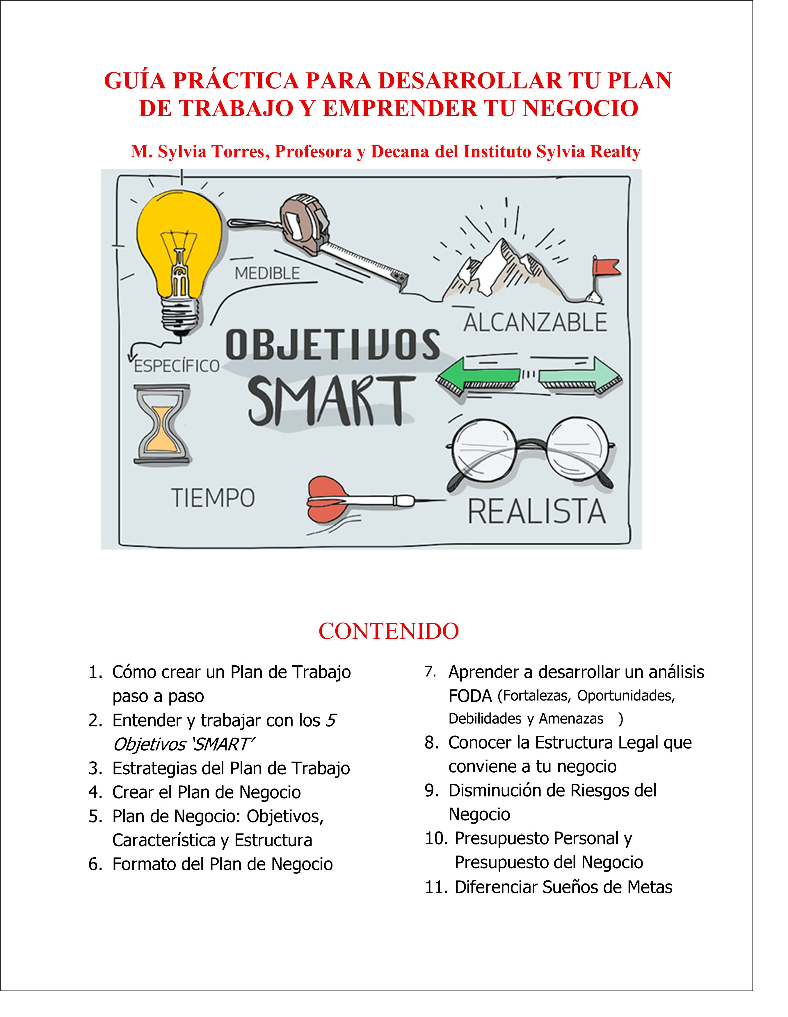 - Establecimiento de metas de tiempo para el desarrollo de tu empresa, entre otros temas.