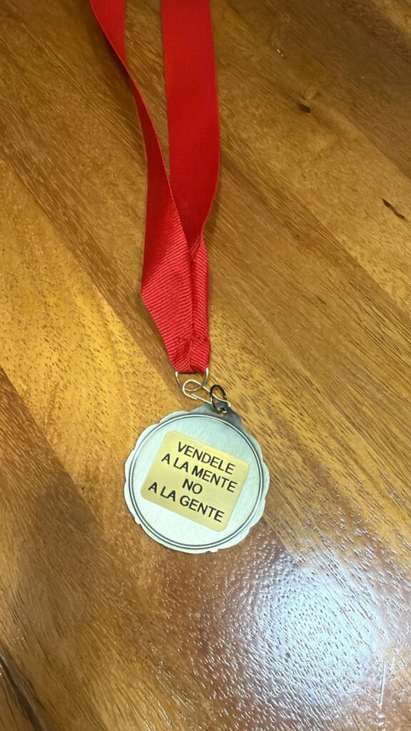Una de las dinámicas más destacadas fue la conformación de cinco grupos de trabajo, cada uno encargado de diseñar estrategias de venta para dos productos ficticios, aplicando los principios de las neuroventas. Al final, cada equipo presentó su propuesta y, mediante votación, se seleccionó un grupo ganador, cuyos diez integrantes recibieron una medalla como reconocimiento.